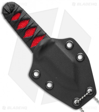 This Neck Knife from Sam Eddleman has an acid washed D2 steel clip point blade with hollow grinds and the Eddleman Knives logo up front. The handle features red rayskin and a traditional cord wrap. This knife comes with a Kydex sheath and ball chain for neck carry.