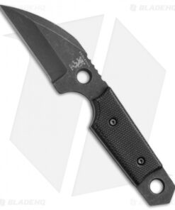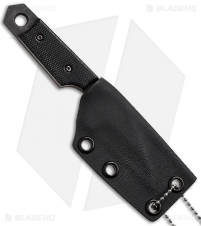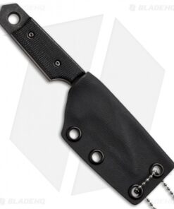 This Wharncliffe Dashi neck knife from Sam Eddleman is small, yet offers impressive control for a wide range of users. The Wharncliffe style blade is acid washed and has hollow grinds with a single secondary grind on the front side of the blade. Black G-10 scales are rounded and smooth; it’s very clean and stylish. This knife comes with a Kydex sheath and ball chain for neck carry.