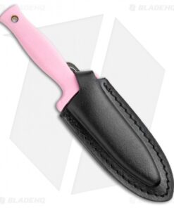 The SCHF19PF Boot Knife from Schrade is a compact fixed blade with a single-edged dagger. It features a black powder coated blade and textured pink TPE rubber handles with a double guard for safe use. The SCHF19PF includes a leather sheath with boot/belt clip.