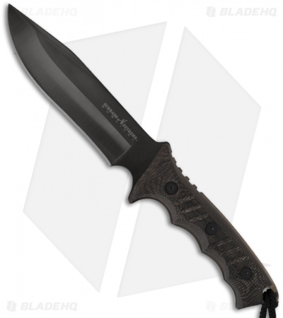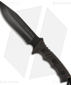 This Schrade Extreme Survival fixed blade is a big knife for outdoor acitivities. It features a black coated drop point steel blade. The full-tang design is coupled with grooved Micarta scales. The handle has a deep finger pattern and jimping on the spine for secure grip. Included is a black nylon sheath with plastic insert.