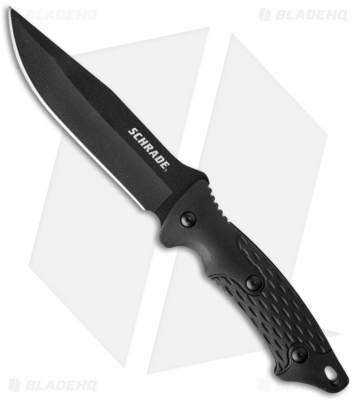 Schrade Fixed Blade Knife Full Tang Black TPE (5″ Black Plain) SCHF30