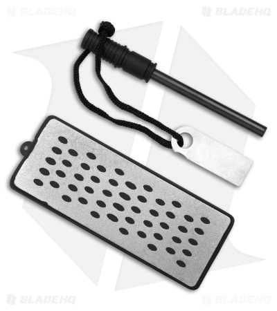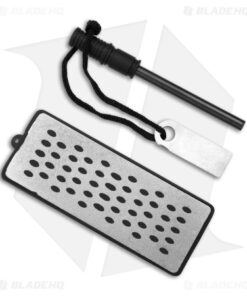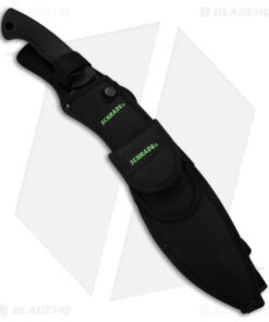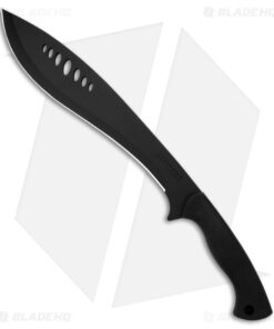 This Schrade Large Kukri Machete features a classic curved Kukri style blade with a grippy molded polymer handle. The blade is made from stainless steel with a durable black finish. The large flat-ground blade will make light work of any chopping or hacking chores that come your way, while the ovals in the blade lighten the weight of the knife and reduce friction for easier cut and release. Item includes a heavy-duty nylon sheath, ferro rod, striker, and sharpening stone.