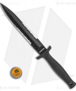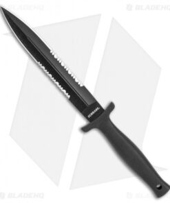 This Needle model has a large double edged blade with a partially serrated edge and a black TPE handle. The Schrade Needle boot knife offers a slim and concealable design with a fine leather sheath. It has a blade made from high carbon steel with a durable black coating and a fuller groove. The handle is made from grippy TPE thermoplastic for a secure hold in difficult conditions. Item includes a leather sheath with a boot/belt clip.