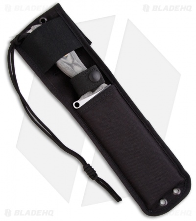 The Warthog is the first in a line of knives developed for hunters and anti-poaching units in South Africa. It is a very powerful knife with a 5″ full tang, hand-ground blade that is over 2 1/4″ wide at its broadest poit. The black Linen Micarta handle is ergonomically designed, shaped to fit comfortably into the palm of the hand. The Warthog comes with a black Cordura sheath.