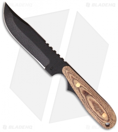 The Wolf Bowie knife from Shadow Tech. This knife features a 3/16″ thick Bowie style blade with a plain edge. The blade is black powder coated 1095 steel and the handle has Micarta scales. The Wolf Bowie includes a Kydex sheath.