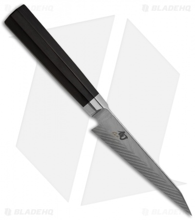 The Shun Dual Core Honesuki is a stunning Japanese handcrafted boning knife. Its blade features durable dual core construction with 71 alternating micro-layers of high-carbon, high-chromium VG10 and VG2 stainless steel extending all the way to the edge. This knife easily maneuvers around bones and between joints with absolute control. The handle is a traditional Japanese octagon shape made from ebony pakkawood for a comfortable grip. Includes a wooden saya sheath.