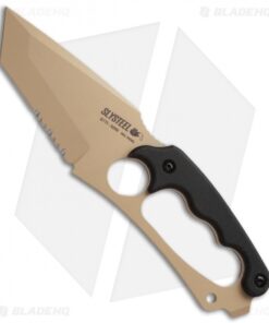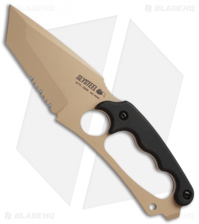 SLYSTEEL Shark Tooth Tactical I Fixed Blade Knife (3.5″ Tan Serr)