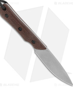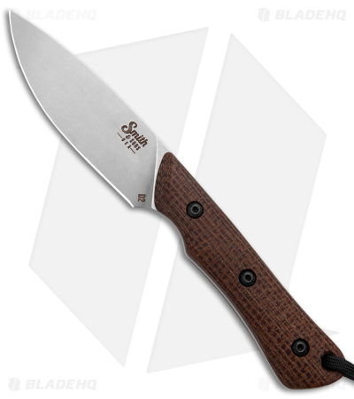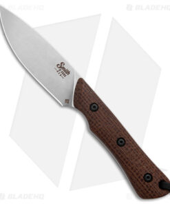 Smith & Sons Brave Fixed Blade Knife Brown Burlap Micarta (3.2″ Stonewash D2)