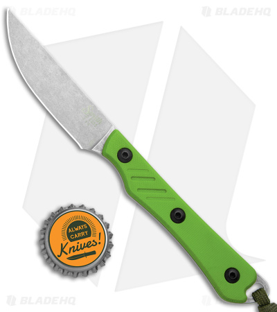 - Green G-10 scales over a full tang.