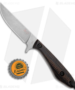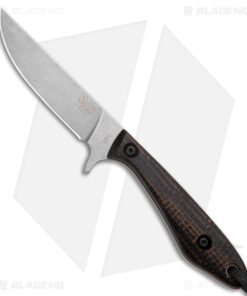 - Black burlap micarta scales over a full tang.