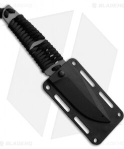 The 910 fixed blade from Smith & Wesson is a versatile knife for outdoor recreation, and it’s a great tactical knife for field chores. It has a gray coated stainless steel blade and skeletonized handle tied with black 550 paracord. Increased usability and grip is provided by notches on the spine and a small finger groove to better handle fine cutting tasks. A black molded polymer sheath with clip is included for multiple carry options.