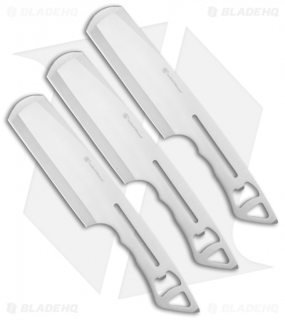 These Bullseye Throwing Cleavers have been weighed and balanced for ideal turning to hit the target every time! They are 10 inches long and feature a bottle opener at the base of the handle. The sharpened edge goes up the side and the top of the blade for a sure bullseye.