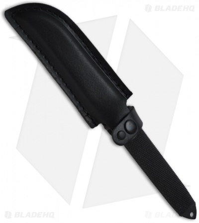 Smith and Wesson knives are built tough, like this SWHRT7T Boot knife, part of the Hostage Rescue Team line knife. The HRT 7 fixed blade tanto knife has a stainless steel blade that is black powder coat finished. The handle has textured rubber grip and a guard too. The breaker tip is useful in many situations and has the added utility of a lanyard hole. The sheath has button closure and a strong steel clip for carry.