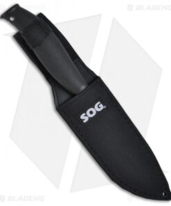 SOG Knives presents the Aura knife line. The Aura Camping knife has a 7Cr13 stainless steel blade with a large profile for chopping and outdoors work or maybe even in the kitchen if you please. The handle is tough glass-reinforced zytel with a rubber overmold for an excellent feel and grip in any weather conditions. The handle has a built in carbide sharpener that unscrews from the base. The Aura includes a nylon sheath with belt loop.