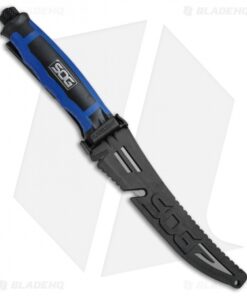 SOG’s first fishing knife. This Bladelight features a 6-inch fillet knife accompanied by six intensely bright LED lights (three on each side of the blade). The lights, with an output of 37 lumens, will make fish cleaning or bait cutting in the dying hours of the day so much easier. It could help find the way to the boat launch or mooring. The fixed blade – made of 8CR13MOV stainless steel – is anchored to a glass reinforced nylon handle. Two AAA batteries will provide more than four hours of burntime for the LED lights. That’s a lot of fish cleaning.