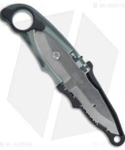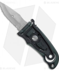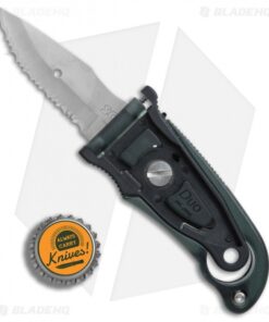 This SOG model is equipped with a black zytel handle and a satin finished Duo blade with a plain edge on one side and a serrated on the other.