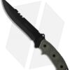 The SOG Field Knife offers a sturdy full-tang design for tackling all of your outdoor duties. It comes equipped with a 7Cr17MoV stainless steel blade in a satin finish. A grooved thermoplastic rubber handle ensures the knife stays firmly in hand during any cutting task. This Field Knife includes a black molded polymer sheath for secure carry.