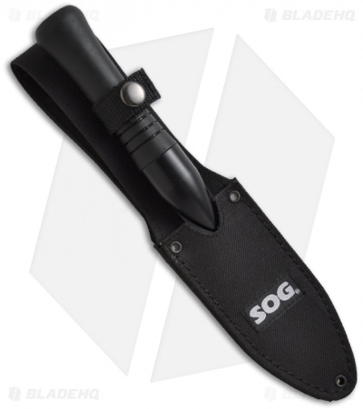 The SOG Spirit is a sleek and aerodynamic fixed blade knife that allows the user to unscrew the handle and use a broom handle (fits most common broom handles) to complete the spear! In a survival situation, use a branch to make the spear shaft and tighten it with a nail or the provided setscrew. With the provided handle the Spirit can be thrown or used as a cutting tool. The Spirit comes with a nylon sheath.