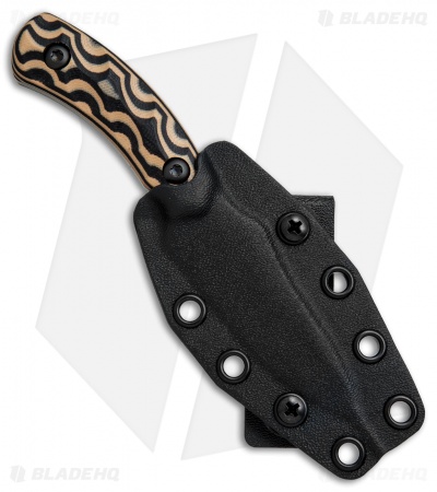 The Southern Grind Jackal Pup is a compact EDC neck knife based on the sleek design of the original full size Jackal fixed blade. It offers a smaller profile that is easy to carry and conceal, yet still built strong enough to handle any utility cutting chore. The Jackal Pup is outfitted with a full tang blade made from tough 8670 high carbon steel and 3D milled G-10 handle scales. This model has a black PVD finished blade with black and tan G-10 handle scales.