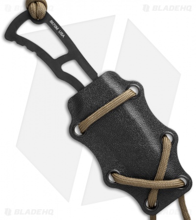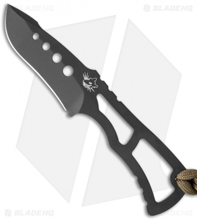 The Vermin Fixed blade is a compact neck knife designed with convenient everyday carry in mind. It features a full tang, skeletonized design made from 8670M high carbon steel. The blade comes in a drop point style with a plain, flat ground edge. A black Cerakote Armor coating provides a non-reflective surface and amazing corrosion resistance. The Rat comes equipped with a black kydex sheath and a 48″ brown paracord neck lanyard. Add this impressively designed Southern Grind neck knife to your collection today!