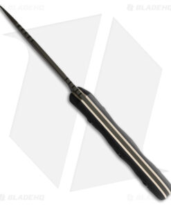 - Black carbon fiber handles over tan micarta.