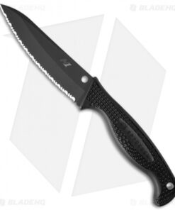 Spyderco’s Aqua Salt knife features a rust-free H-1* steel blade with a weight reducing swedge grind on the spine. The blade is thin, hollow-ground with a fully serrated edge and a non-reflective TiCN black finish. The textured black fiberglass reinforced nylon handle with lanyard hole. The injection molded sheath features a multi-position G-Clip.
