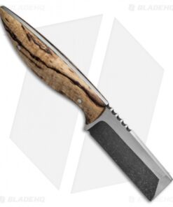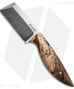 This EDC Cleaver knife from Stark Creations features a full-tang AEB-L steel blade fitted with rounded Spalted Koa scales for a comfortable grip. The blade sports a two-tone finish with satin flats and acid washed grinds. Deep notched jimping and an ergonomic handle design ensures total blade control during use. Includes a secure black Kydex sheath.