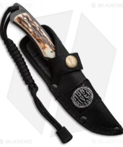 This caping knife from Stone River Gear features a black ceramic blade and a stag horn handle. The knife includes a nylon sheath for comfortable belt carry. Stone River specializes in designing high quality ceramic knives for the kitchen, outdoors, and general everyday carry. They use Zirconium Oxide ceramic which resists cracks and wear far better than other materials. Experience the cutting power of a ceramic blade with the knives and tools from Stone River Gear.