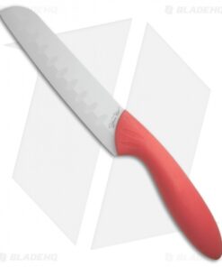 This Stone River Gear Kitchen set offers two ceramic kitchen knives with pink handles and white blades. It includes a large Santoku style blade and a smaller pairing knife. They each have ceramic blades for maximized edge retention and corrosion resistance. Rubberized handles provide a non-slip grip in wet kitchen conditions. Each knife includes a hard pink plastic sheath and come packaged in a gift presentation box.