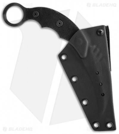 This HS Tarani Karambit fixed blade has a tiger striped CPM S30V steel blade with hollow grinds and two razor sharp edges! The front tang is marked “STRIDER” and the back has the logo. Full tang construction with textured black G-10 scales. Includes a Kydex sheath with a heavy duty nylon belt loop.