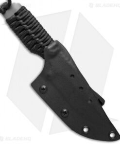 The PR model is a semi-compact fixed blade with full-tang CPM S30V steel construction. This knife has a clip point blade with hollow grinds and a tiger stripe finish. The handle is wrapped with black paracord. Includes a Kydex sheath with belt attachment system.