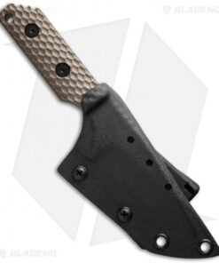 This SA fixed blade knife from Strider has a 3/16 inch thick S30V stainless steel spear point blade with a black Cerakote finish. The front tang is marked “STRIDER” and the back has their logo. Full tang construction makes this knife very solid. The handle is GG “Gunner Grip” coyote G-10 and features jimping on the thumb ramp. Includes a Kydex sheath.