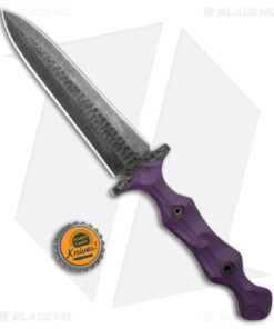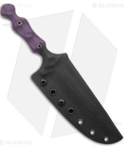 - Rock-textured purple G-10 handle scales over a full tang.