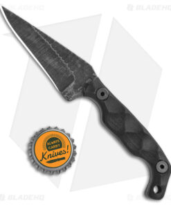 - Black stonewashed, hammer-finished modified drop point blade made from high carbon 1095 steel.