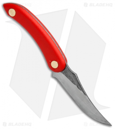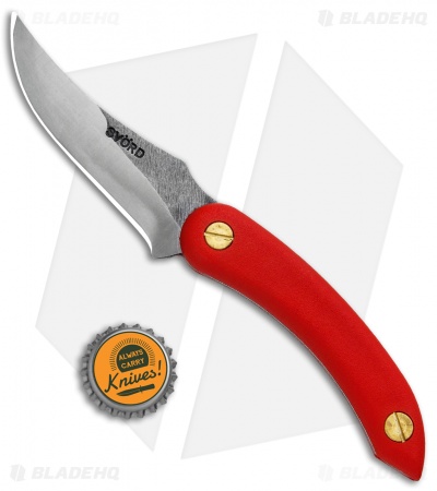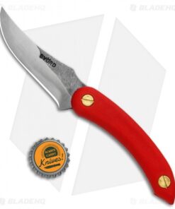 The Svord Amerikiwi features an upswept skinning blade for managing a wide range of hunting and camping chores. This model is built with a red polypropylene handle. The curved handle rests comfortably in the hand while a thumb ramp provides added leverage for detailed blade work. Item includes a leather belt sheath for comfortable carry.