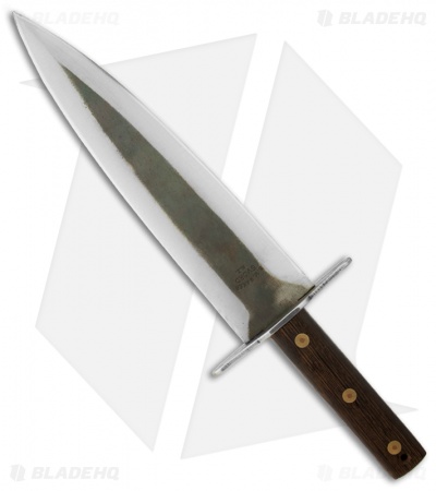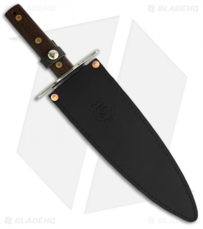 The Hog Beater 11.5″ fixed blade knife has a sharpened double-edged that is convex ground and two-tone finished. Its heft and construction are solid. The Hog Beater is fit for game use or display and includes a large black leather sheath with belt loop.