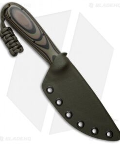 Whether camping, hiking, or slogging through your everyday chores, this T.M Hunt custom fixed blade will make quick work of it all. This knife features a CPM-154 stainless steel blade with a satin finished flat grind and jimping for a steady grip. The handle is built with smooth green camo G-10 scales that have been shaped for extreme comfort during use. Includes a green Kydex sheath for secure carry.
