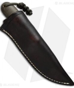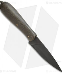 This T.M. Hunt custom fixed blade is sized perfectly for everyday carry and outdoor excursions alike. Its blade is made from black coated, heavy-duty O1 tool steel with jimping on the spine for added control and grip security. The handle is fashioned with smooth green Micarta scales shaped for comfortable extended use. Includes a genuine leather belt sheath.