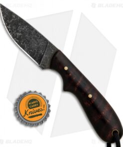 The T.M. Hunt Custom Hedgehog offers a stout, lightweight build that is ideal for daily cutting tasks and outdoor activities. It has a full tang drop point blade made from AEB-L stainless steel with a black acid washed finish. The smooth rounded handle is made from curly maple. Item includes a custom leather belt sheath and a black paracord lanyard.