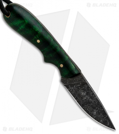 The T.M. Hunt Custom Hedgehog offers a stout, lightweight build that is ideal for daily cutting tasks and outdoor activities. It has a full tang drop point blade made from AEB-L stainless steel with a black acid washed finish. The smooth rounded handle is made from green curly maple. Item includes a custom leather belt sheath and a black paracord lanyard.