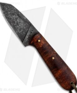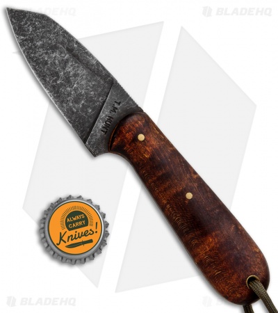 The T.M. Hunt Custom Hogua fixed blade sports a tough and durable lightweight build for managing any outdoor cutting chore. This Haugua model is outfitted with a wharncliffe style blade in a black acid washed finish. It has a curly maple handle with an OD green paracord lanyard. The handle is contoured for ergonomic use, with jimping on the thumb rest for added blade control. Item includes a custom leather belt sheath.