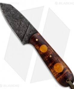 T.M. Hunt Custom Hogua Fixed Blade Knife Curly Maple/Amber Inlay (3.1″ Acid)