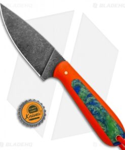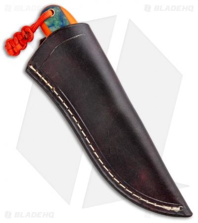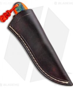 This T.M. Hunt custom fixed blade is sized perfectly for everyday carry and outdoor excursions alike. Its blade is made from black stonewashed, heavy-duty O1 tool steel with jimping on the spine for added control and grip security. The handle is fashioned with smooth orange G-10 scales with Voodoo Resins “Google Earth” inlay, shaped for comfortable extended use. Includes a genuine leather belt sheath.