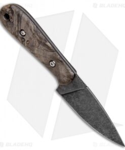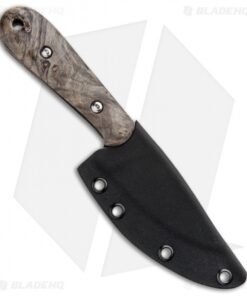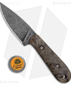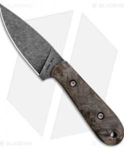 The T.M. Hunt Custom Skelemaug fixed blade features a tough, lightweight build for easy carry during daily tasks or outdoor activities. This Skelemaug model is outfitted with a black acid washed blade and a gray burl wood handle. The handle is contoured for ergonomic use, with jimping on the thumb rest for added blade control. Item includes a molded kydex sheath.