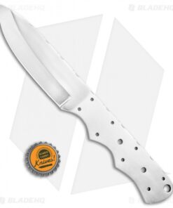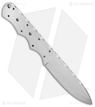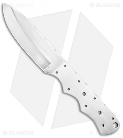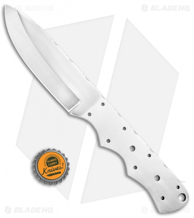 The Tallen Bowie Knife blade blank comes in a drop point style with a satin finish and a plain edge. It offers full-tang construction with machined holes for attaching handle scales.