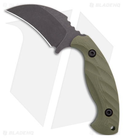 - Black oxide finished hawkbill blade made from CPM 154 steel.