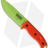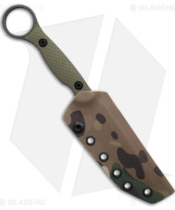 - OD green G-10, textured handle with full tang construction featuring a finger hole.