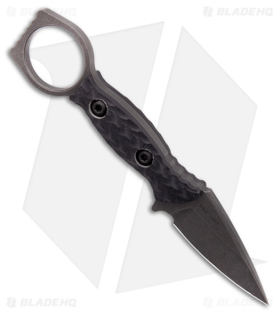 - Textured “carbon” black G-10 scales on a full tang.