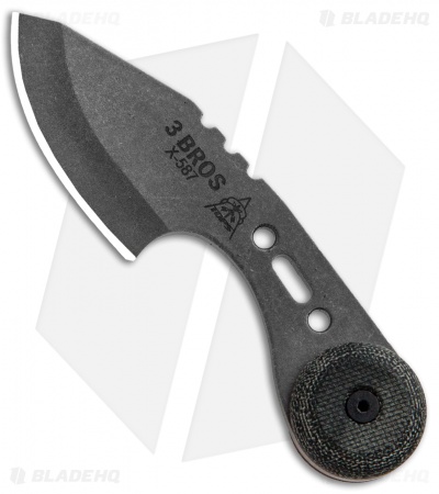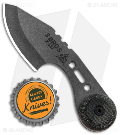 The TOPS 3 Bros fixed is a mini fixed blade that packs a lot of heft into a tiny package. This 3 Bros model is outfitted with a tumbled drop point blade and a black canvas micarta handle piece. Pick up a compact hunting and camping knife with the TOPS 3 Bros fixed blade.