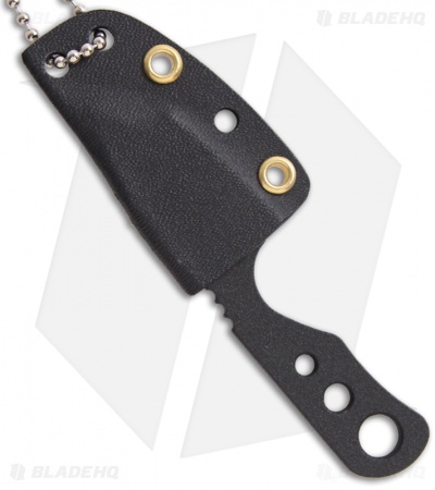TOPS Knives’ Bartender Defender, aka the D-CAPitater is a conveniently sized neck knife with a bottle opener. The perfect knife for crazy fun parties. It is made from 1/8 inch thick 1095 high carbon steel and black traction coated. Includes a Kydex sheath with ball chain. Created by Ryan Johnson, an up and coming designer and high speed CAD drafter.